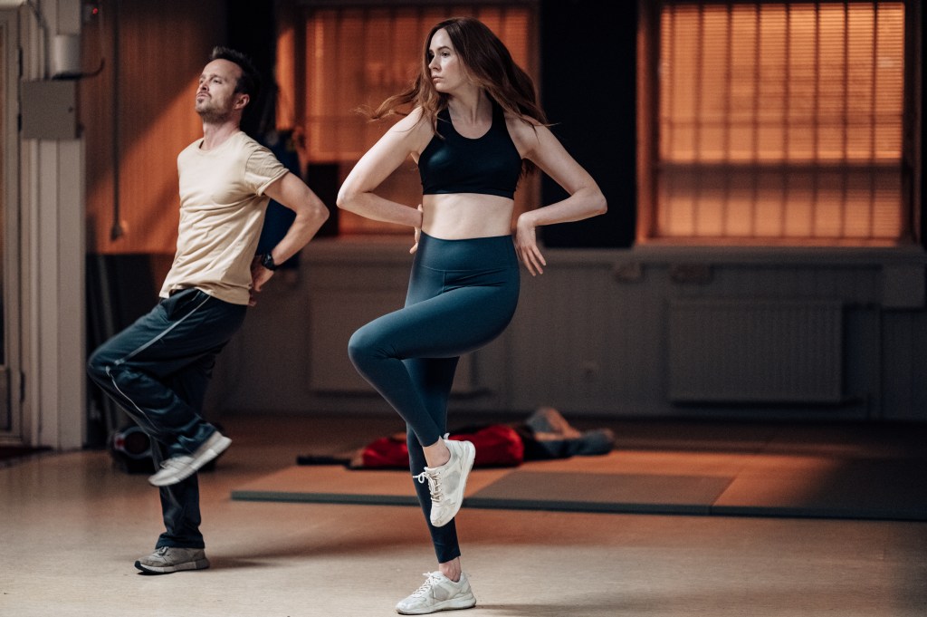 Gillan is an inspired bit of casting in a Riley Stearns film, as her most famous role is literally playing a robot in the Marvel Cinematic Universe. Sarah takes in every bizarre development with an inhuman level of dispassion; she even wonders why she doesn’t cry after receiving the initial news of her diagnosis. But for the film to really have an impact, we should feel the humanity within Sarah. We should understand why she wants to stay alive, beyond a compulsory need. She never expresses many wants or desires or long-term ideals, which unfortunately holds the character at arm’s length for the bulk of the film. Indeed, most of the second and third acts involve her training for the duel with Trent (Aaron Paul), a weirdo gym owner which shares some similarities with Art of Self-Defense.