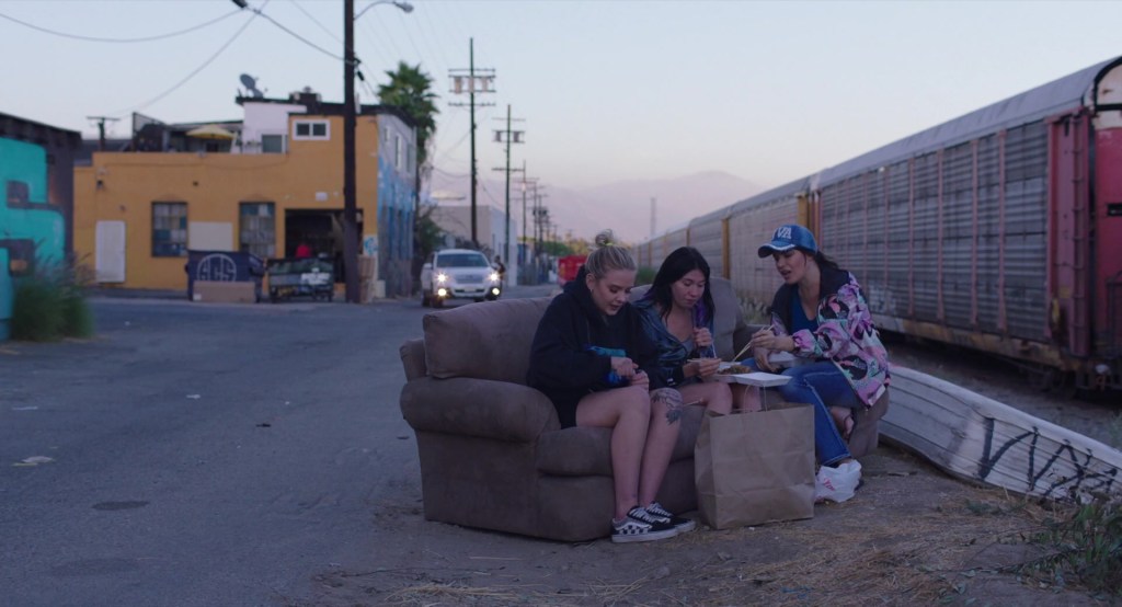 The film begins with Bella Cherry (Kappel) emigrating to the US from Sweden and arriving in Los Angeles with dreams of porn stardom. She dives right in and does a simple “boy-girl” scene, and it’s here where Thyberg establishes the film’s voice. The scene takes place in a sketchy back office styled with a “casting couch” – a big enough red flag for most – and the porno is shot POV-style, a smart choice to bring us into the world that Thyberg wishes to portray.