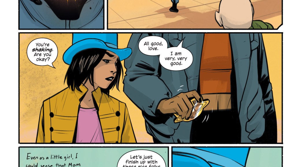 Despite a nice detour on the distant moon and some dialogue with a new character, Alana remains mostly unchanged (though she is sporting a unique hairdo by the end of it). Her conversation with the Fadeaway buyer is subtly written as they touch on the subject of lost love, but I don’t know where her mindset is at by the end of the last issue. Are her priorities any different now, after their interactions with the Skipper’s crew? Perhaps she’ll have some newly surfaced trust issues, or maybe she’ll become even more protective of Hazel and Squire.