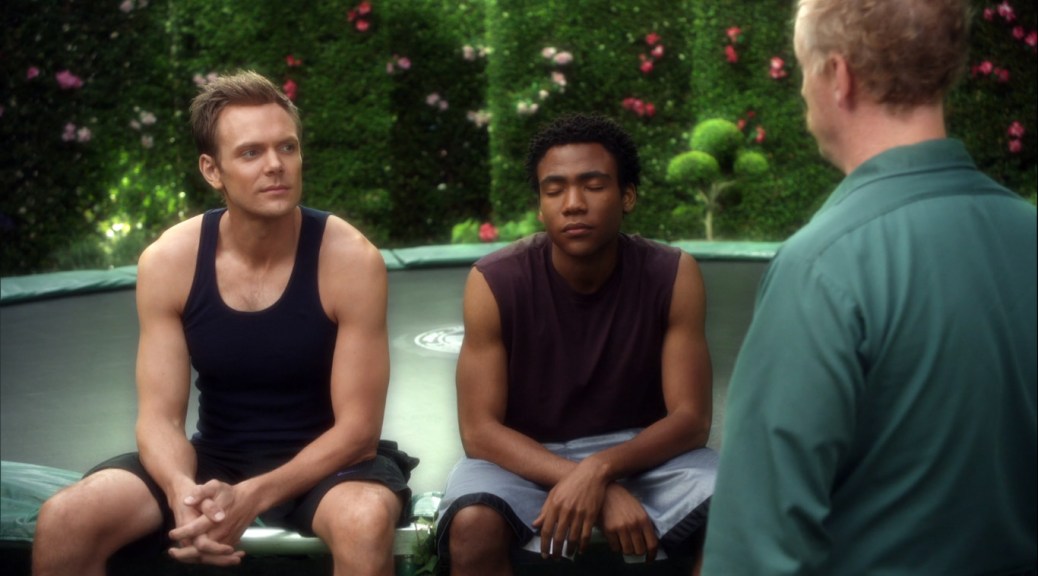 Greendale is a magical place, despite how terrible everyone espouses it to be in nearly every episode, and nowhere is that more evident than in Aerodynamics of Gender. I know that the Britta, Annie, Shirley, and Abed story is probably the A-plot, but there’s a charm to the Jeff and Troy B-plot that just brings a smile to my face. It’s the way that a simple trampoline – a symbol of childhood happiness – can bring so much peace and clarity to these otherwise miserable people. It’s the unnecessary but spot-on soft focus whenever the scene is set in the secret trampoline garden. It’s also Matt Walsh’s guest appearance as the gatekeeper (phrasing) of the garden, who also happens to be a horrible racist.