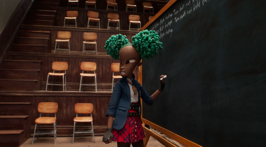 Take Kat (Lyric Ross), for example: she sports dueling green buns to support her rebellious nature. After all, her parents died in a car accident when she was 8 and she continues to blame herself, which leads her to juvie and a Catholic school for girls, ultimately. At the same time, the film shifts over to the demon world, where Wendell (Keegan-Michael Key) and Wild (Jordan Peele) are toiling away, adding hair follicles to their oversized father’s scalp. For reasons that aren’t exactly fleshed out, their one true desire in life is to build a carnival, and they can’t do that unless they escape to the human world.