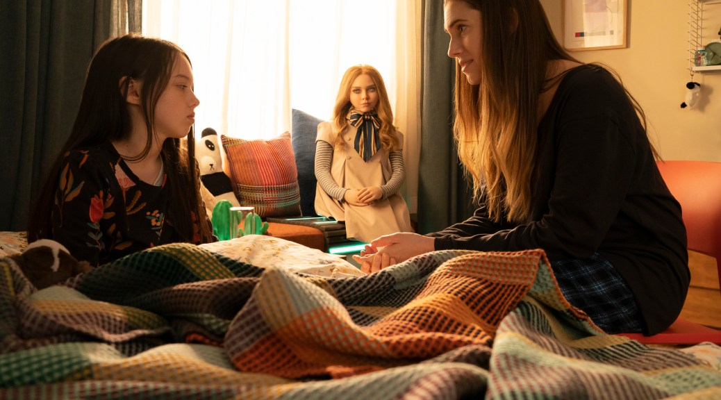 The film comes from contemporary horror/comedy royalty, listing James Wan and Jason Blum as producers, and directed by Gerard Johnstone with a script from Akela Cooper. Cooper’s screenplay efficiently sets up its premise early on and smartly introduces its characters, leaving plenty of time to have fun with it. After her parents are killed in a car crash, Cady (Violet McGraw) goes to live with her aunt Gemma (Allison Williams, also listed as another producer), who’s in the throes of a crisis at the toy company where she’s tasked with creating the next big thing. She’s been secretly toiling away at creating M3GAN (the Model 3 Generative Android), a kind of Siri in life-like doll form, and introduces her to Cady in an attempt to help her in her grief.