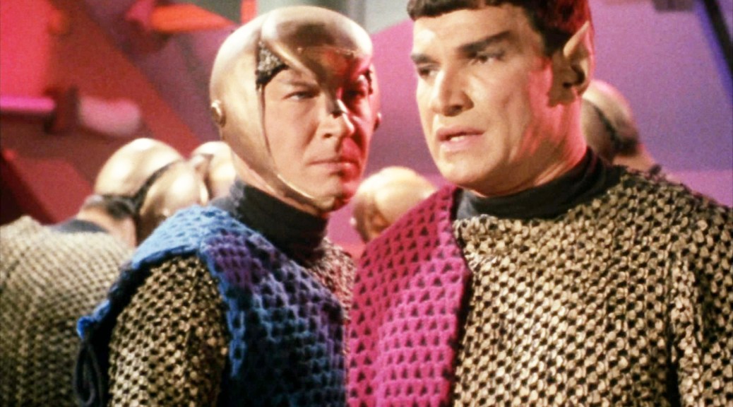 One question inherent in any sci-fi property set in the distant future is how much of our current pop culture and traditions will survive. Will organized religion or secular holidays be remembered the same in 300 years, or will the creatives behind the scenes insert their own takes on how they may shift? It’s evident in both installments this week: with The Conscience of the King, it’s in the enduring appeal of Shakespeare and classical theater, and in Balance of Terror, it’s in the opening minutes as Kirk presides over a wedding ceremony.