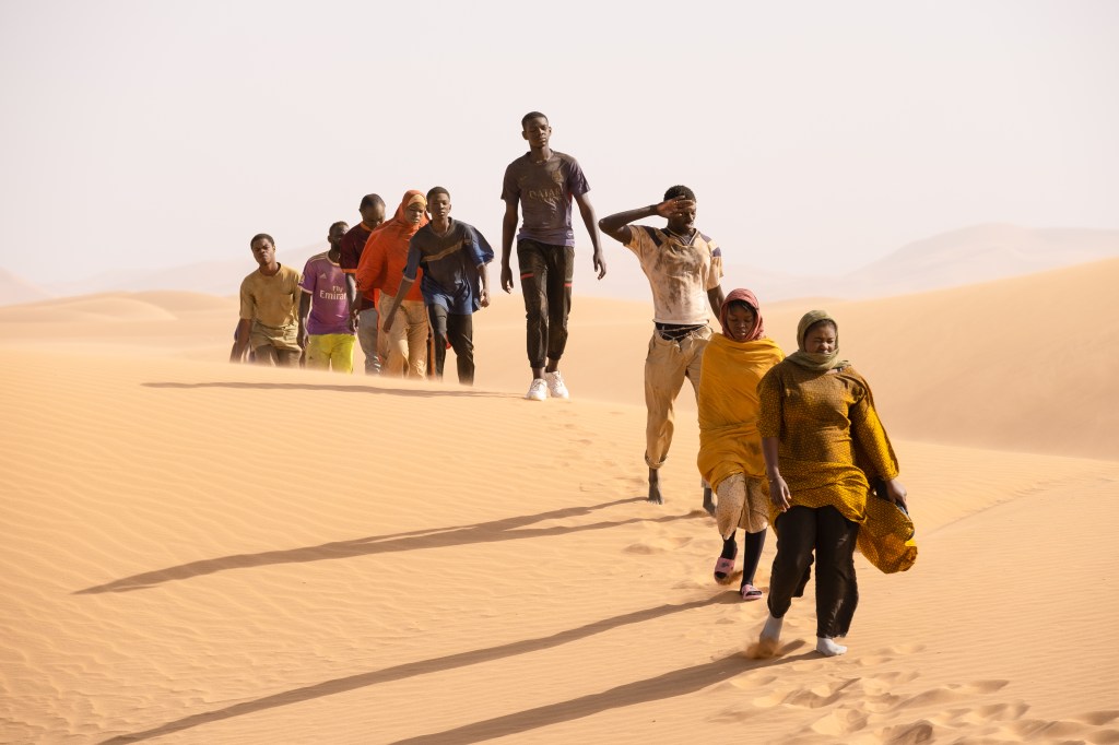 Our hero is Seydou (Seydou Sarr), a Senegalese teenager who dreams of making it in Europe as a musician. He’s goaded into leaving Senegal by his cousin Moussa (Moustapha Fall), but they have to sneak out in secret without telling their parents. Seydou tries to test-drive the idea to his mother one night, but she quickly shoots him down. Turns out mother does know best, as it doesn’t take long for the boys’ trip to Italy to show signs of danger. It begins when they’re speeding in the bed of a crowded truck across the Sahara, and one man falls off. The driver never slows down, never stops.